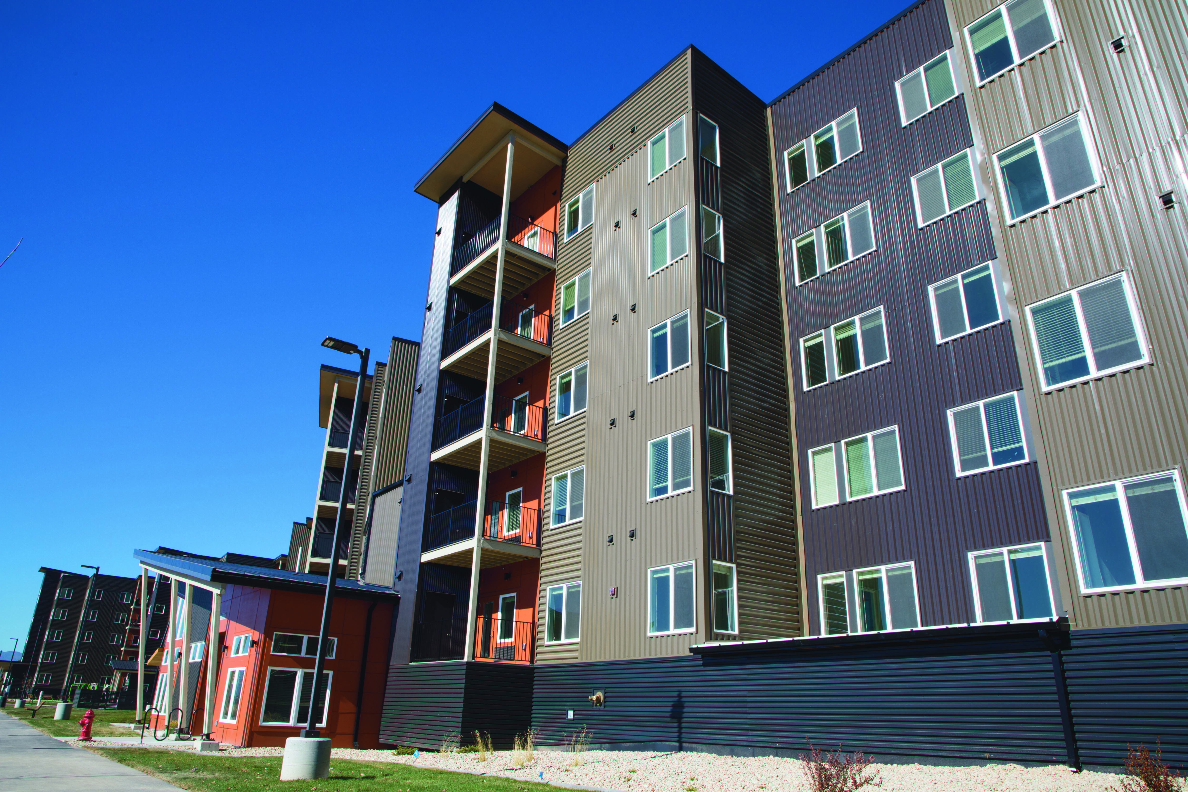 The Villagio Apartments project is a 200-unit low-income community built for the Missoula Housing Authority. The DAC preconstruction team worked closely with the architects and owners to ensure all required and desired building features were interwoven into the design in a way that allowed the project to be built within the allotted budget. The project comprises two five-story wood frame buildings over a concrete podium with underground parking garages. The unit make-up is two-, three-, and four-bedroom apartments with two bathrooms in every unit, type A and type B. The exterior envelope consists of metal and James Hardie siding. The overall square footage of both buildings, including underground parking, was 336,000.